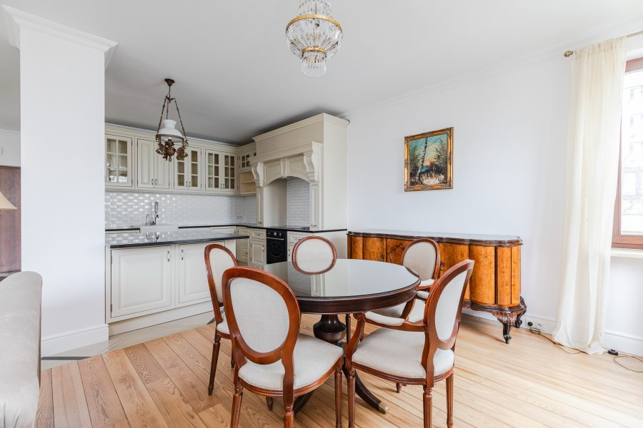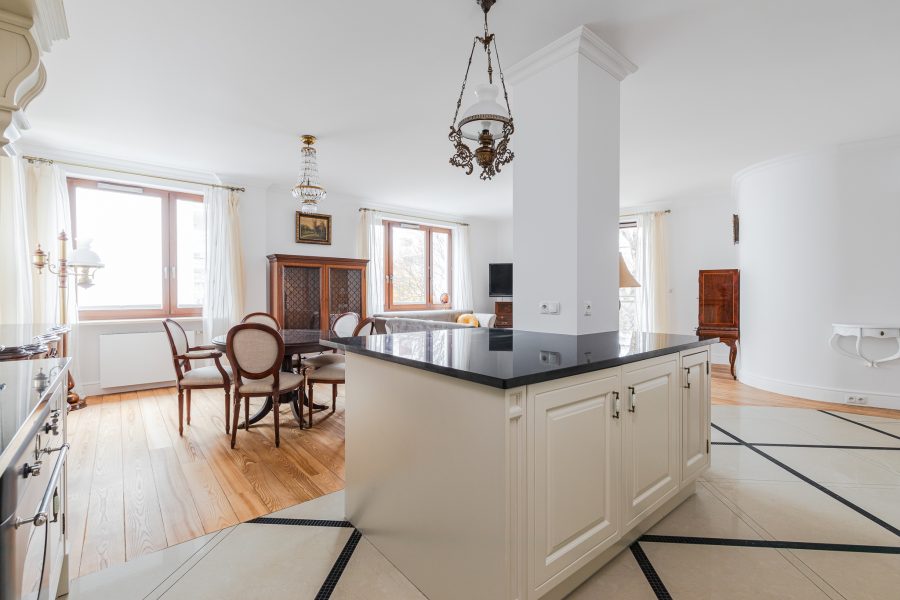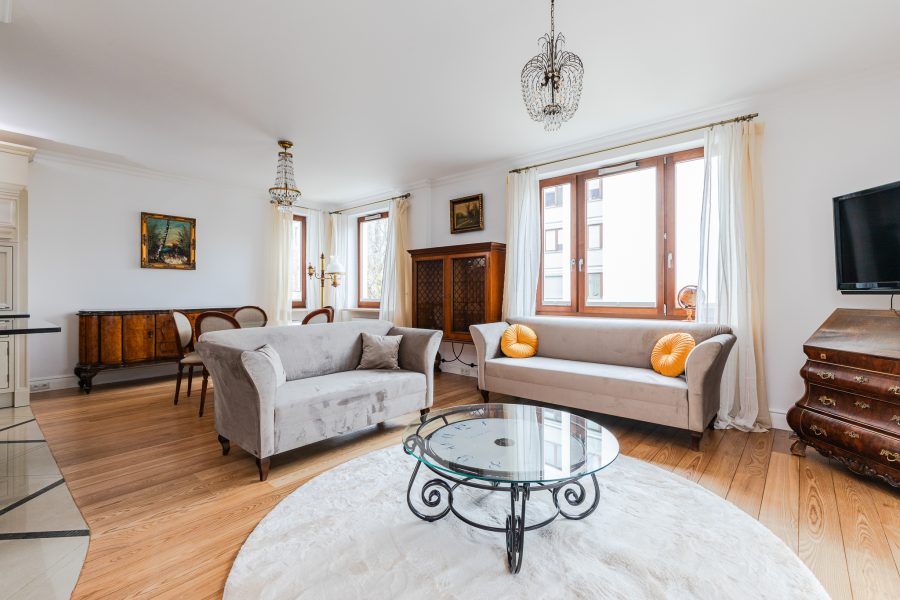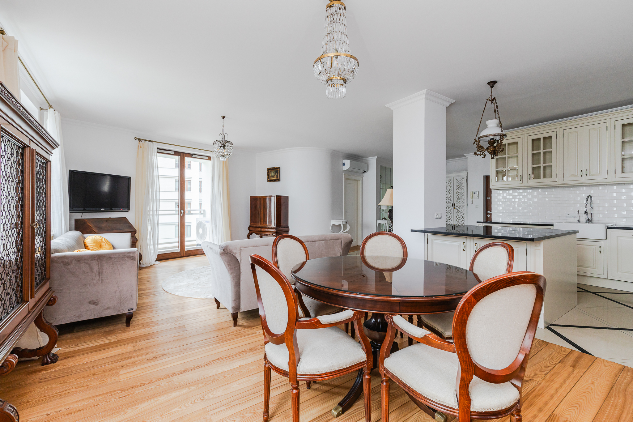 Fully furnished and equipped unique, bright and spacious apartment in the most beautiful part of Powiśle. The living area is a very large open space of the living room combined with the kitchen and dining room. The apartment is well-lit by large windows. A comfortable large terrace will allow you to relax in the fresh air. The apartment is kept in excellent condition, bright colors of the interior prevail. Carefully selected unique furniture creates a very cozy atmosphere.